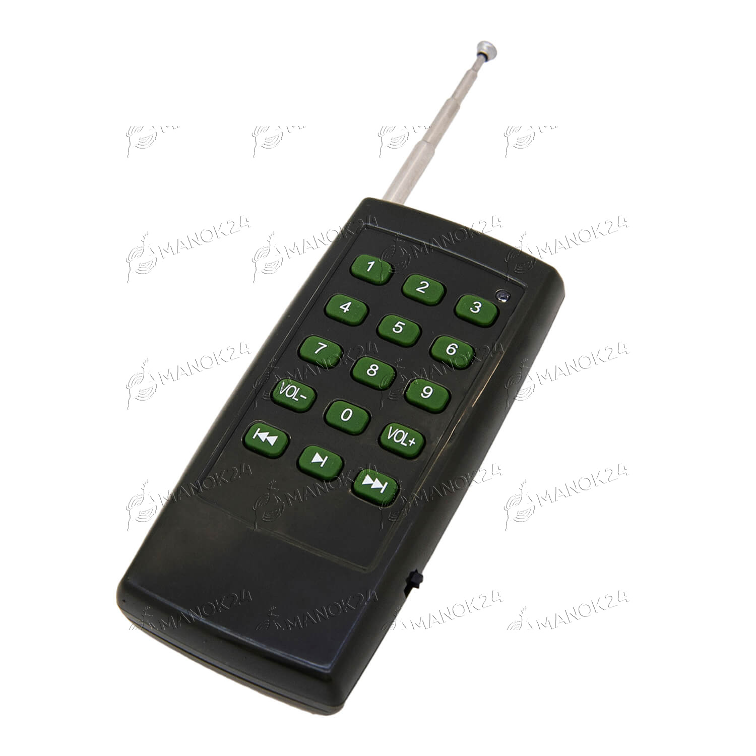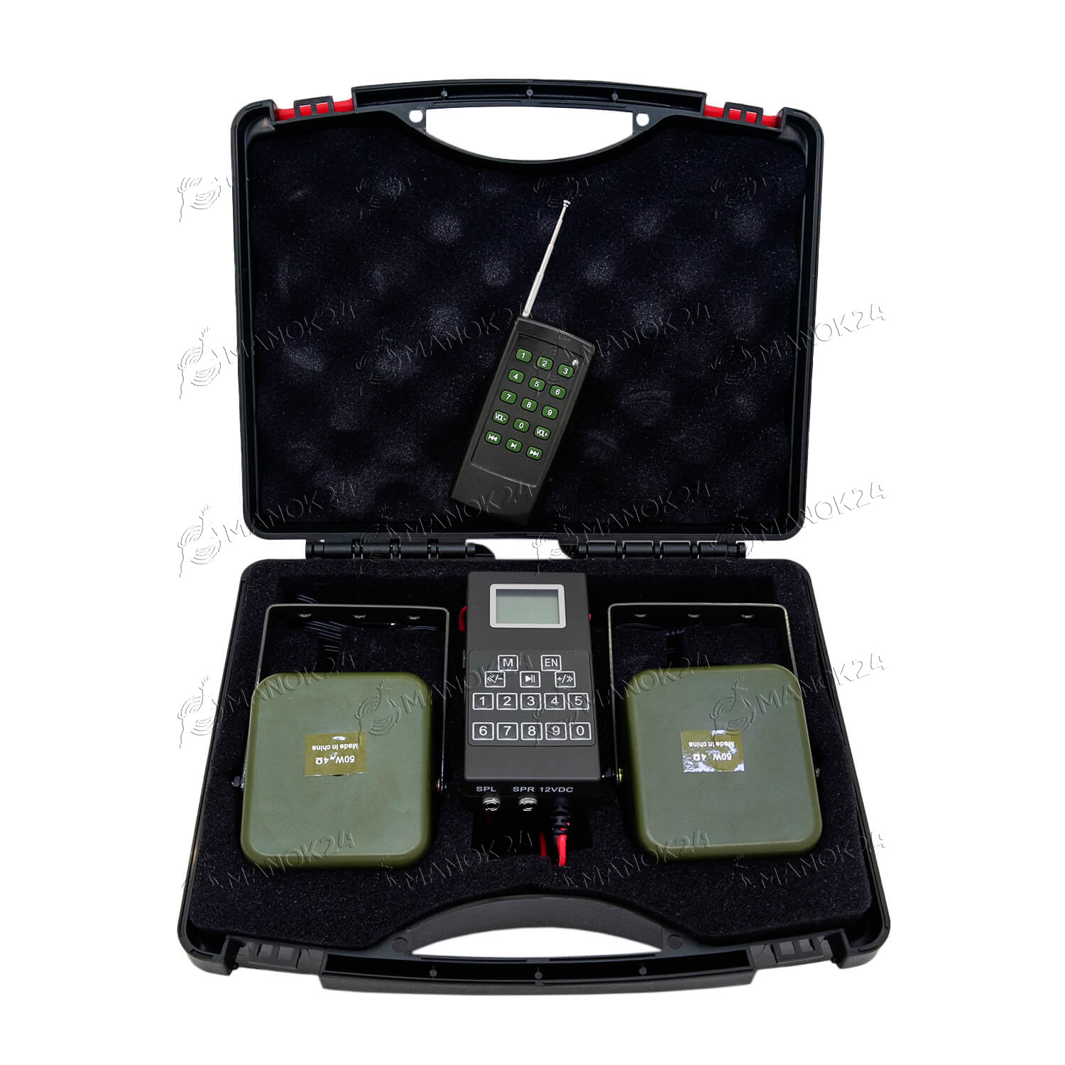 Электронный манок с пьезоизлучателем мощностью 50 Вт в качестве динамика. Прибор в пылевлагозащитном корпусе содержит встроенную память на 210 звуков, издаваемых различными животными и птицами. В манке предусмотрено подключение дополнительного выносного пьезоизлучателя, установка пароля, таймера и дополнительной библиотеки звуков. Для подключения к компьютеру предусмотрен порт Mini-B USB. Питание производится от внешнего аккумулятора 12 В.